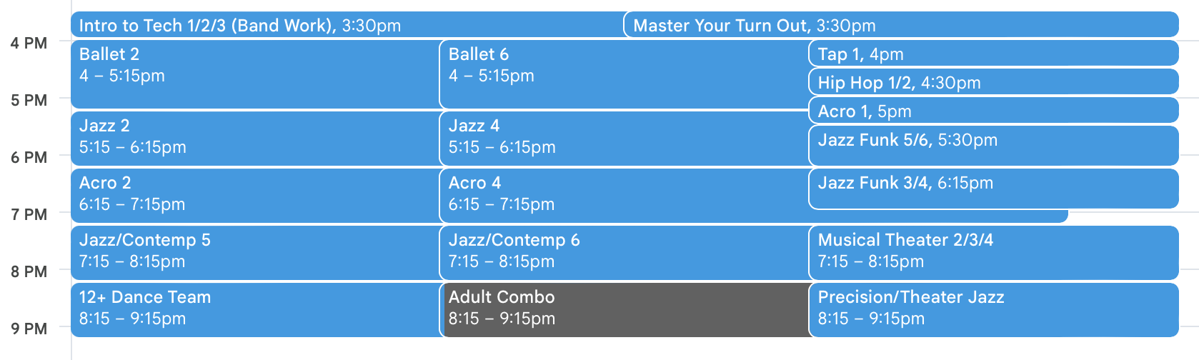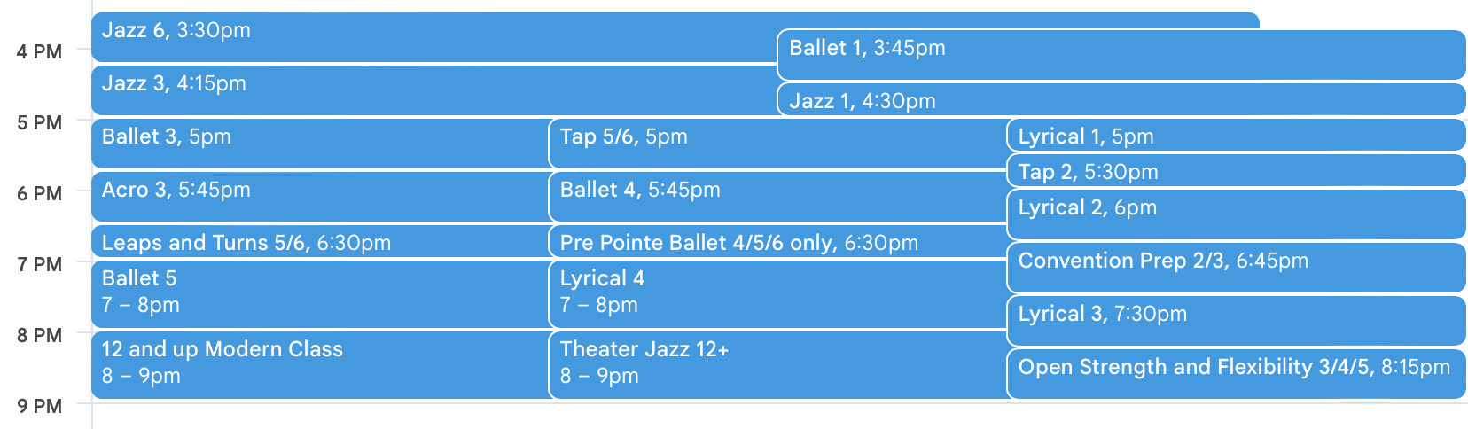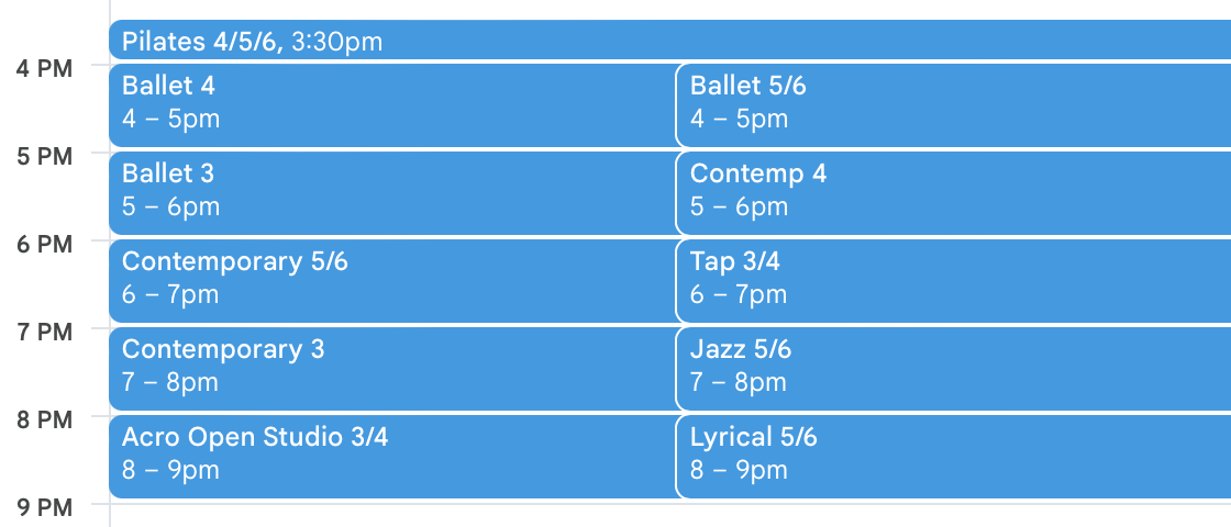 Ballet (Required): 4:00-5:15
